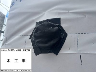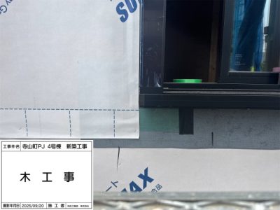 サッシ周り、防水シート、ウェザーシート、防水テープ施工。